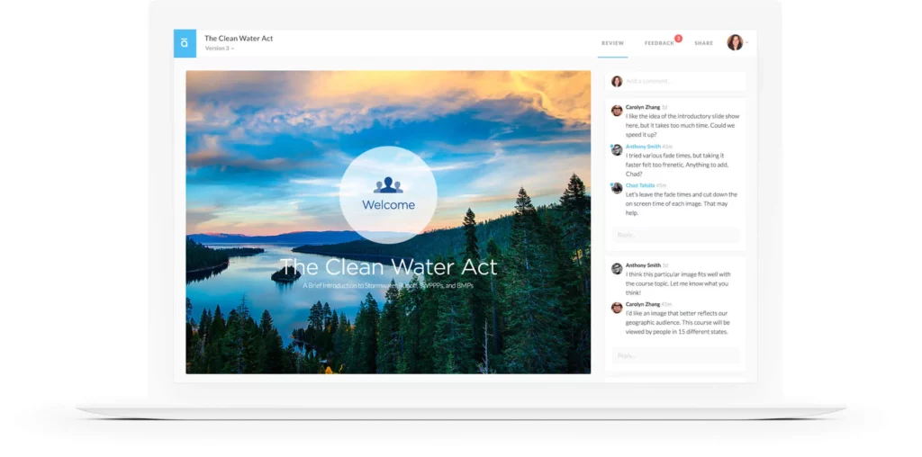 Speed project reviews by allowing stakeholders to view courses and provide feedback in a web browser—no app download required.